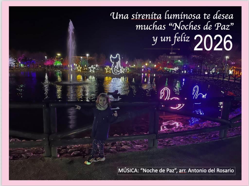Mi felicitación de este año con un fondo musical que merece la pena escuchar https://www.youtube.com/watch?v=ra9Uym6kA84 Una sirenita luminosa te desea muchas “Noches de Paz” y un feliz 2026. MÚSICA: «Noche de Paz», de Franz Xaver Gruber ARREGLOS: Antonio del Rosario IMAGEN: Parque del Rodeo, Villanueva de la Serena (Badajoz). #nochedepaz #villancicos Antonio Del Rosario Cedrés […]