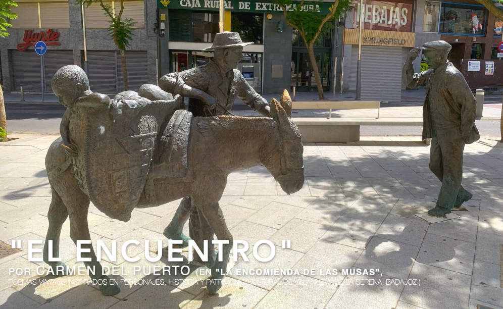 Poema extraído del proyecto «La Encomienda de las Musas». Poemas ‘vintage’ inspirados en personajes, historia y patrimonio cultural de Villanueva de la Serena (Badajoz). En este caso, dedicado al Grupo escultórico de «Las Pasaderas», de Eduardo Acero, en esta localidad extremeña. Autora: Carmen del Puerto Varela. Con la colaboración de Antonio Barrantes Lozano, Antonia Díaz Moraga y el Ayuntamiento de Villanueva de la Serena.