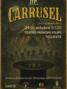 Ayer descubrí una vez más que “el mayor espectáculo del mundo” no es el circo, tampoco una película, sino el teatro, una ventana a un mundo de fantasía donde los sueños pueden hacerse realidad, donde aquellos “freaks” de Tod Browning se convierten en auténticos monstruos teatrales en escena, madres y padres de un colegio maravilloso (así lo recuerdan mis hijas), el Colegio Nuryana, con interpretaciones magistrales de actores aficionados. Como el personaje de Orrú, ese payaso triste que nos recuerda a un Joker, aunque más conmovedor y encarnado soberbiamente por Irene Fernández Fuarros , acompañado por las extrañas hermanas Klauss, la vidente Madama Pott, el forzudo Brutus, el ventrílocuo Guido, el taumaturgo Nosferatu, la bella trapecista Piccola, la mujer barbuda Basilia, el malabarista Gastón, el estudiante/aprendiz de mago Antonini, también en el rol del siempre necesario “público”, y todos los que allí estábamos haciendo nuestro papel y aplaudiendo la función de “Carrusel,” basado en el texto de Alberto Rizzo y representado en el Teatro Príncipe Felipe de Tegueste, en Tenerife.